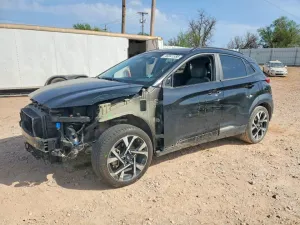 2022 Hyundai KONA Limited z aukcji Copart: VIN KM8K53A34NU788393 • LOT #46041556 • OKLAHOMA CITY, OK • uszkodzenie bok • przebieg 51 549 mi.