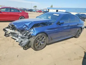 2022 BMW M550xi z aukcji Copart: VIN WBA13BK0XNCJ16197 • LOT #46213556 • WOODHAVEN, MI • uszkodzenie przód • przebieg 69 811 mi.