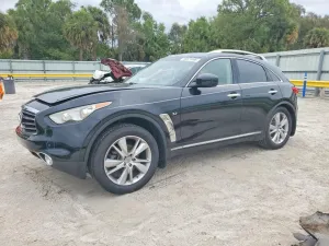 2015 Infiniti QX70 BASE z aukcji Copart: VIN JN8CS1MU9FM380746 • LOT #46621066 • FORT PIERCE, FL • uszkodzenie bok • dodatkowo tył • przebieg 116 379 mi.