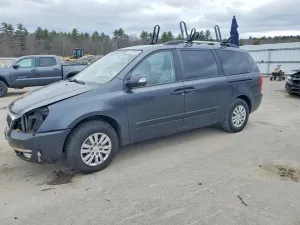 2014 KIA Sedona LX z aukcji Copart: VIN KNDMG4C7XE6539419 • LOT #48164836 • WINDHAM, ME • uszkodzenie przód • przebieg 131 306 mi.