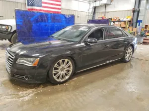 2014 AUDI A8 L TDI Quattro z aukcji Copart: VIN WAURMAFD7EN000886 • LOT #48519396 • CASPER, WY • uszkodzenie przód • przebieg 170 225 mi.