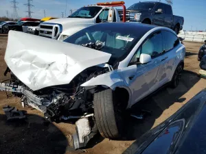 2025 Tesla Model X z aukcji Copart: VIN 7SAXCBE63SF465376 • LOT #49022256 • ELGIN, IL • uszkodzenie przód • przebieg 0 mi.