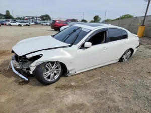 2015 Infiniti Q40 BASE z aukcji Copart: VIN JN1CV6APXFM502080 • LOT #49344706 • SAN DIEGO, CA • uszkodzenie przód • dodatkowo tył • przebieg 137 735 mi.