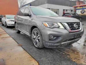 2018 Nissan Pathfinder S z aukcji Copart: VIN 5N1DR2MM7JC617973 • LOT #49780016 • OTTAWA, ON • aukcja 2026-04-15 13:00 • uszkodzenie drobne wgniecenia • dodatkowo normalne zużycie • przebieg 110 419 mi.