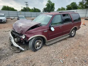 2000 FORD Expedition Eddie Bauer z aukcji Copart: VIN 1FMRU1769YLB02656 • LOT #70446625 • OKLAHOMA CITY, OK • uszkodzenie przód • dodatkowo drobne wgniecenia • przebieg 0 mi.