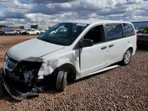 2019 Dodge Grand Caravan SE z aukcji Copart: VIN 2C4RDGBG9KR799235 • LOT #77714915 • PHOENIX, AZ • uszkodzenie przód • dodatkowo bok • przebieg 27 465 mi.