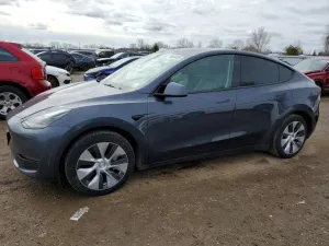 2023 Tesla Model Y z aukcji Copart: VIN 7SAYGAEE2PF608397 • LOT #79909435 • LONDON, ON • uszkodzenie dach • przebieg 113 457 mi.