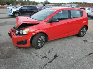 2015 Chevrolet Sonic LS z aukcji Copart: VIN 1G1JA6SG8F4203131 • LOT #91355575 • EXETER, RI • aukcja 2026-04-14 10:00 • uszkodzenie przód • dodatkowo bok • przebieg 215 695 mi.