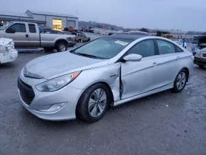 2014 Hyundai Sonata HYB Hybrid z aukcji Copart: VIN KMHEC4A40EA107780 • LOT #93659705 • EARLINGTON, KY • uszkodzenie przód • dodatkowo bok • przebieg 103 696 mi.