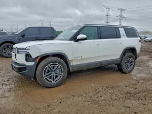 2025 Rivian R1S Advent RIS Adventure z aukcji Copart: VIN 7PDSGBBA1SN057280 • LOT #94537145 • ELGIN, IL • uszkodzenie przód • dodatkowo bok • przebieg 11 399 mi.