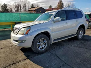 2005 Lexus GX 470 z aukcji Copart: VIN JTJBT20X850089197 • LOT #96203305 • DENVER, CO • aukcja 2026-02-12 12:00 • uszkodzenie przód • przebieg 224 463 mi.