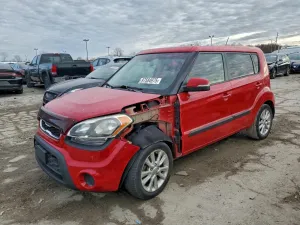 2012 KIA SOUL + z aukcji Copart: VIN KNDJT2A65C7456081 • LOT #97584975 • INDIANAPOLIS, IN • uszkodzenie przód • przebieg 92 966 mi.