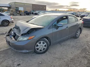2012 Honda Civic LX z aukcji Copart: VIN 19XFB2F55CE045370 • LOT #97969985 • KANSAS CITY, KS • aukcja 2026-02-12 12:00 • uszkodzenie przód • dodatkowo tył • przebieg 0 mi.