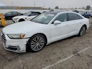 2019 AUDI A8 L z aukcji Copart: VIN WAU8DAF88KN023345 • LOT #98088035 • VAN NUYS, CA • uszkodzenie przód • dodatkowo bok • przebieg 46 712 mi.
