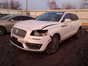 2019 Lincoln Nautilus R Reserve z aukcji Copart: VIN 2LMPJ8L9XKBL47020 • LOT #98216165 • DYER, IN • uszkodzenie przód • przebieg 114 295 mi.