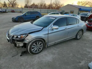 2014 Honda Accord EXL z aukcji Copart: VIN 1HGCR2F83EA032665 • LOT #99207585 • WICHITA, KS • aukcja 2026-02-11 12:00 • uszkodzenie przód • dodatkowo bok • przebieg 95 868 mi.